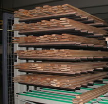 Abstapelautomat mit Regalwagen in den ca. 80 Hölzer auf 11 Etagen abgelegt werden können, ideal für den innerbetrieblichen Weitertranport